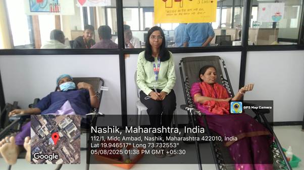 Brief about the Program (Activity/ Event details)Blood donation camp organized at MIDC, AmbadHemoglobin and blood group were checked and screening done by JR Dr. Deepali ShindeReactions due to blood donation also managed.Good Management, cooperative peoples.