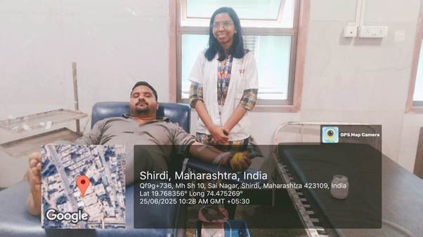 Brief about the Program (Activity/ Event details)Blood donation camp organized at Sai Baba Mandir, ShirdiBlood Bags were prepared by JR Dr. Deepali Shinde.Good Management, cooperative, supported staff.